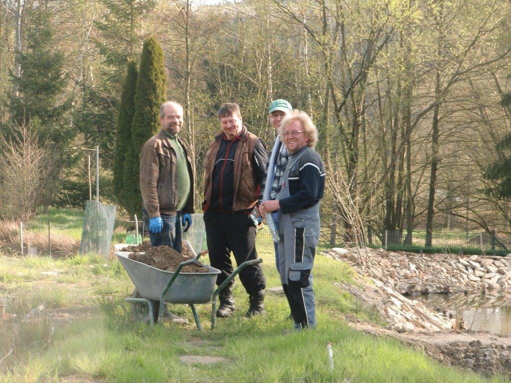 Seitdem hat sich einiges getan. Anfang 2013 wurden einige Bäume gefällt. Zwei Teiche wurden zu einem größeren zusammengelegt und vertieft, sämtliche Teiche wurden abgefischt, 2 davon entschlämmt. Das Gelände wurde nivelliert, das vorher unkontrolliert laufende Quellwasser gezielt in die Teiche geleitet. Der Zaun wurde instand gesetzt, eine Feuerstelle angelegt sowie die Teichmönche repariert.